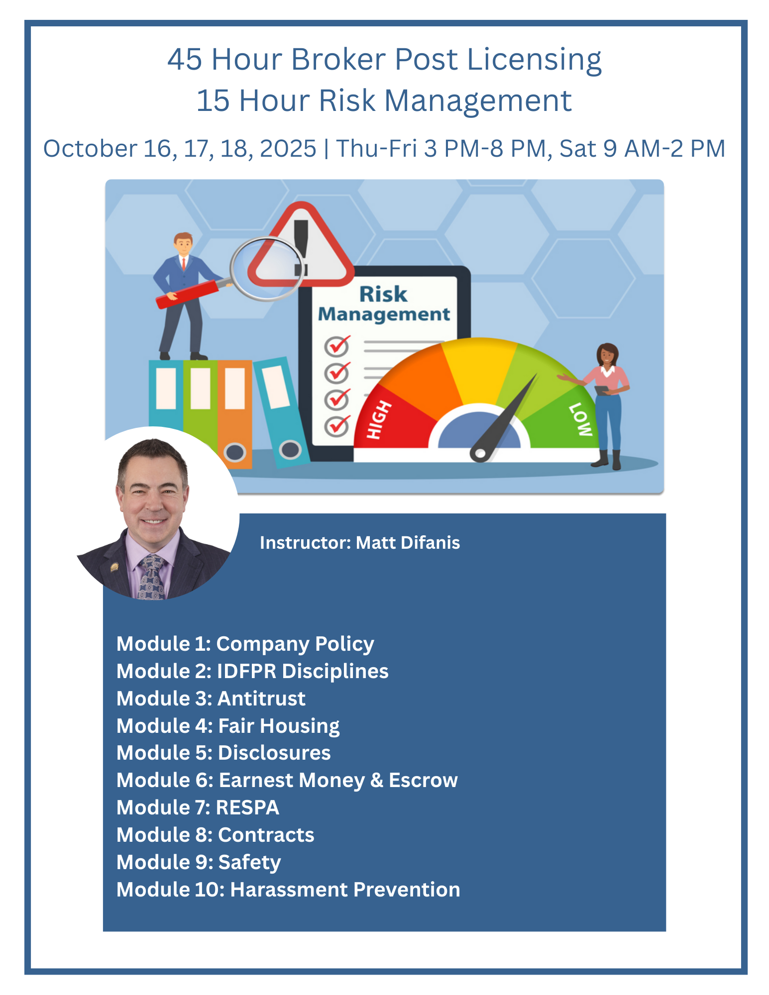 15-Hour Broker Post-License Risk Management/Discipline (includes sexual harassment prevention training)